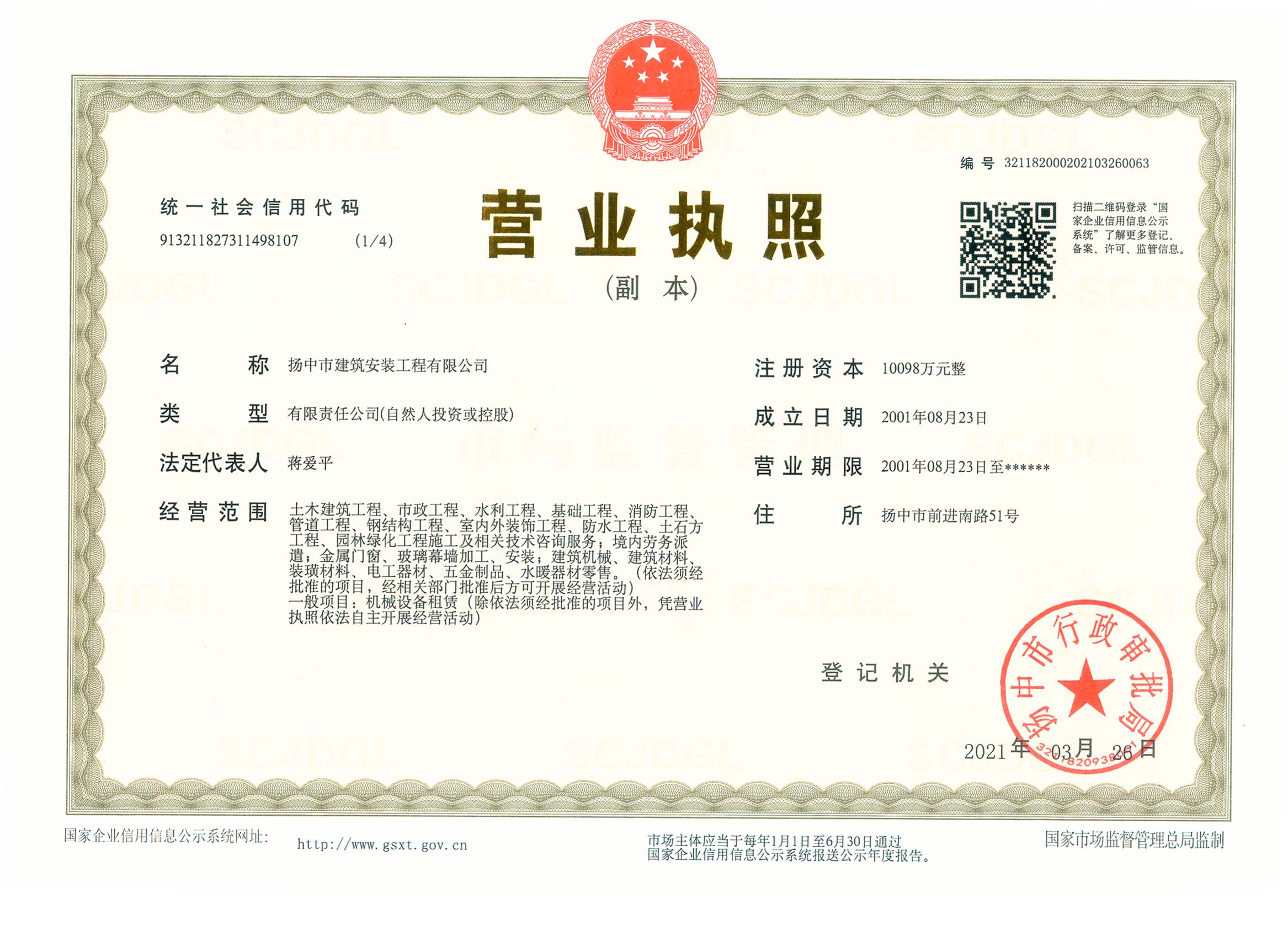 揚中市建筑安裝工程有限公司的前身是成立于1955年的揚中市建筑安裝工程總公司,從揚中第一代建筑人開創(chuàng)了揚中建筑業(yè)以來,經過60多年的艱苦創(chuàng)業(yè),企業(yè)的綜合實力不斷發(fā)展、壯大。公司現(xiàn)有職工1688人,有職稱的技術經濟人員308人,其中具有高級職稱的14人,具有中級職稱的69人,一級項目經理15人,二級項目經理18人。擁有固定資產7000萬元,注冊資本10098萬元,施工機械設備519臺 (套),年施工產值6億元。